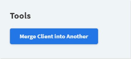 At the bottom of the Client info section, click the blue Merge Client into Another button.